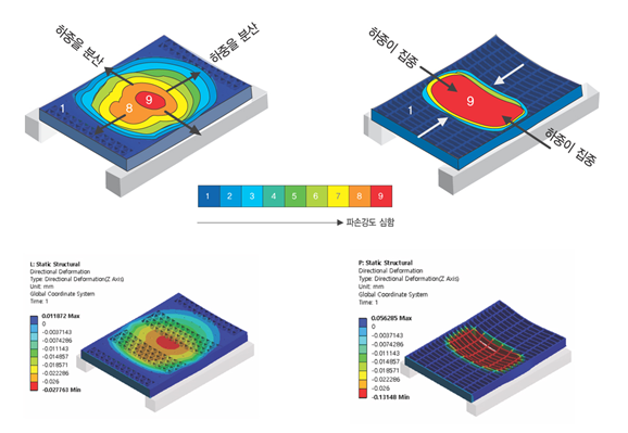 ㄷ형강부분을 효율적으로 보강하여 상부에서 충격이 가해졌을 때